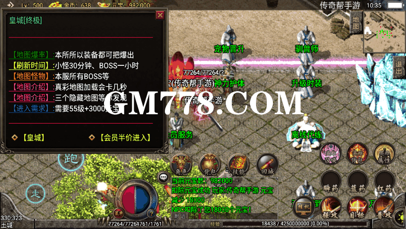 1.80弑帝时装战神终极英雄合击手机传奇版本有些老旧,属于战神引擎早期的版本,网站上有一个类似的,但那个没有英雄合击功能,其他的细节不记得了,版本刘某有2个小特色吧,一个就是春节福卡,正好到了春节前夕,可以提取出来,还有一个就是宠物升级了,从1-9级,宠物越到后面越厉害。其他的方面没有什么特别要说的,版本带了配套的苹果安卓客户端,经过整理好后,换成了套件版。